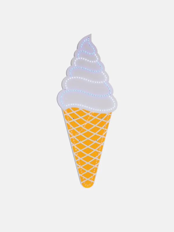 Questo cono soft rappresenta una novità assoluta nell’impiego dei LED. Utilizziamo infatti dei LED singoli colorati, con dimensioni e luminosità superiori alla norma, per “disegnare” il contorno e le forme del cono sfruttando la luce diretta di questi eccezionali LED. Ogni singolo LED è protetto da una membrana in silicone per l’esposizione all’esterno. La brillantezza di questi LED Vi sorprenderà anche se li guardate da notevole distanza.