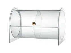 Portacialde in Plexiglass con divisorio asportabile versione trasparente. Elegante e comodo. Capiente e Pratico sia nel retrobanco che a vista, sopra la vetrina.