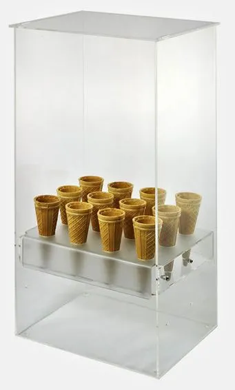 Portaconi in plexiglas trasparente con coperchio mobile.