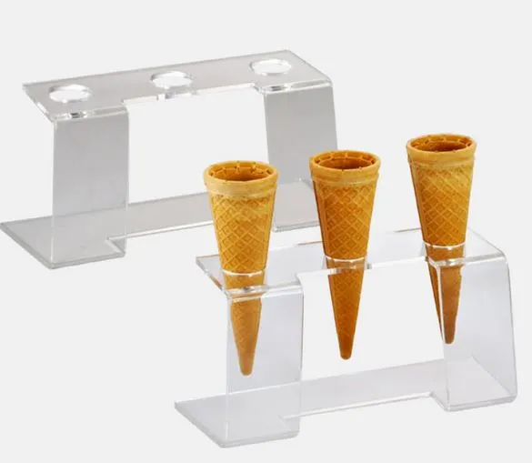 Pratico ed elegante portaconi di servizio in plexiglas trasparente con 3 fori per coni standard.