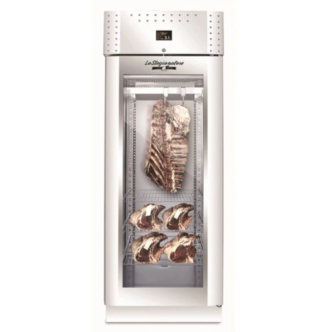 Prodotto realizzato in acciaio inox, progettato per la frollatura della carne. Tutta la gamma degli armadi per la frollatura sono pensati per garantire un perfetto DRY-AGING ottenendo il miglior risultato per i propri tagli di carne. Struttura interna ed esterna in acciaio inox AISI 304 con finiture in Scotch Brite, non necessita di allacciamento alla rete idrica. Dotato di cremagliere griglie e guide in acciaio inox AISI 304 e interno con spigoli arrotondati e fondo stampato.