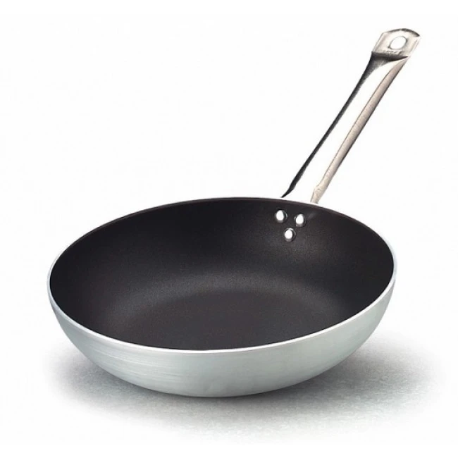 Linea professionale in alluminio puro al 99%. In base alle dimensioni la possiamo impiegare per la cottura al salto di sostanze non ricche d’acqua e per friggere. La padella antiaderente è utile per saltare la pasta, contorni brasati al burro, apertura di mitili. Un impiego solitamente adatto ad una cucina al momento e veloce.